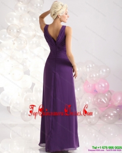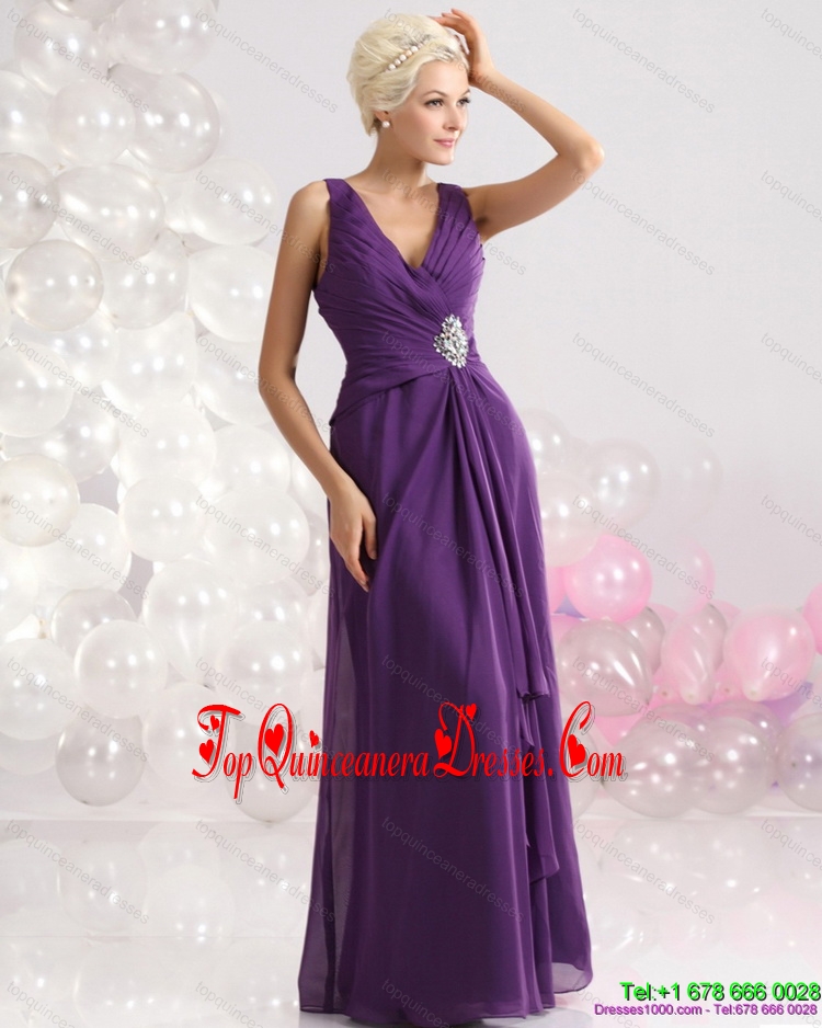 Fashionable V Neck Floor Length Damas Dress with Beading and Ruching