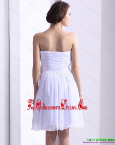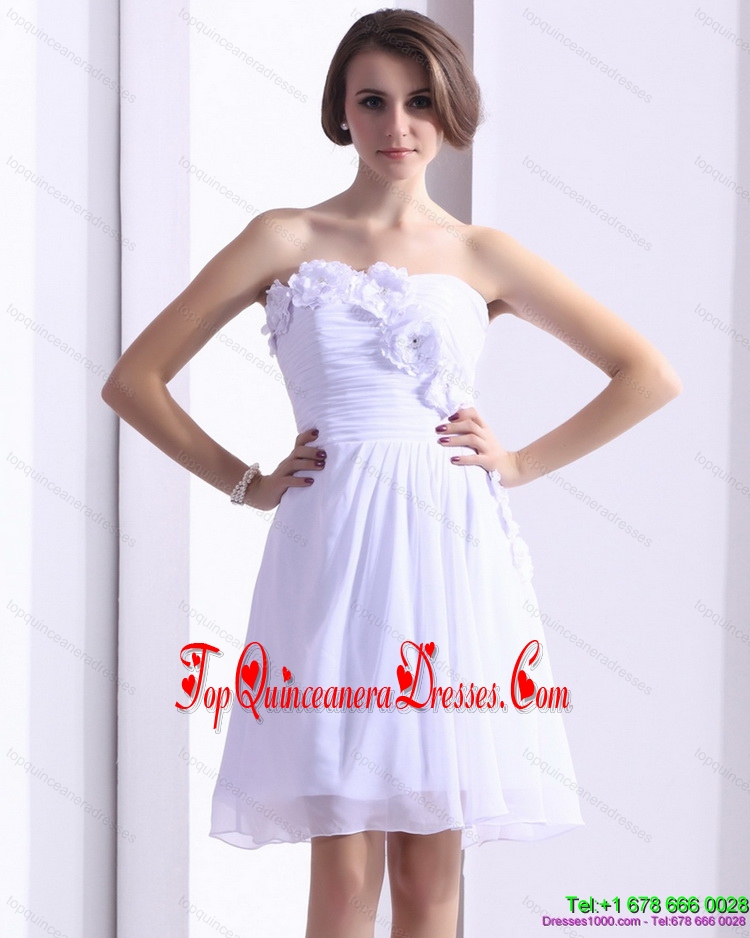 Fashionable White Strapless Damas Dresses with Ruching and Hand Made Flower