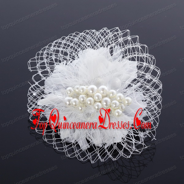 Feather and Tulle Imitation Pearls Feather Flower Hairpin for Outdoor
