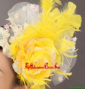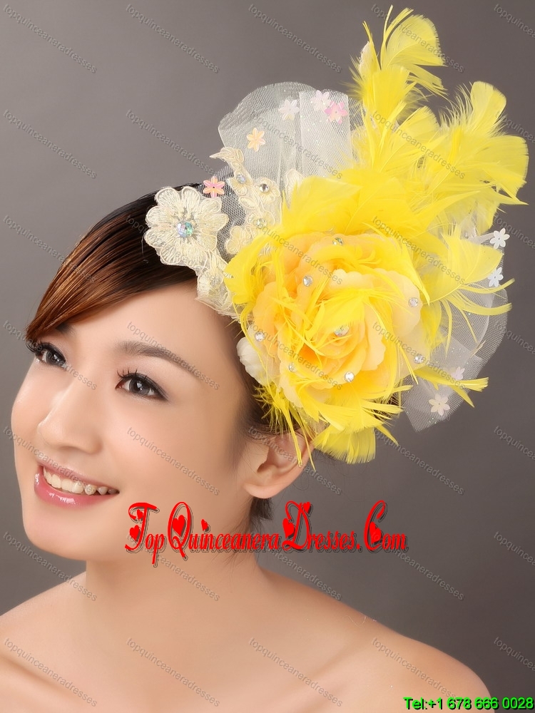 Feather Appliques Yellow Special Occasion Fascinators