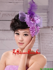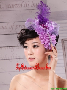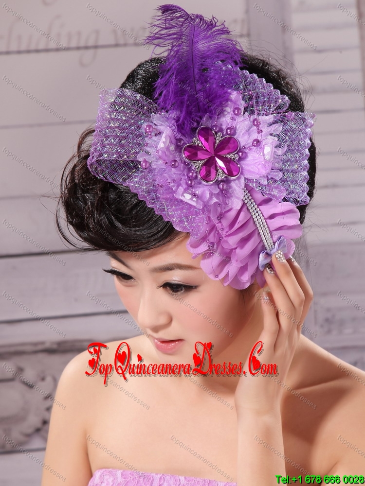 Feather Ribbon Pearl Lavender Bridal Headpiece