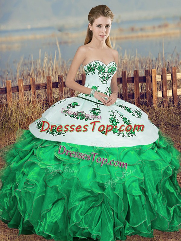 Fine Ball Gowns Quinceanera Gowns Green Sweetheart Organza Sleeveless Floor Length Lace Up