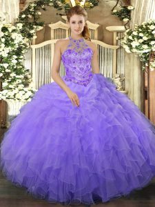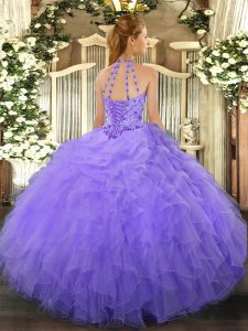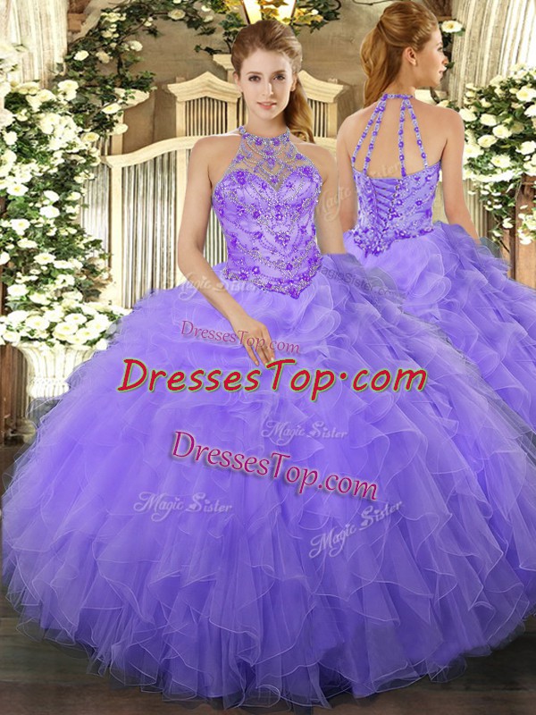 Fine Beading and Ruffles Sweet 16 Dress Lavender Lace Up Sleeveless Floor Length