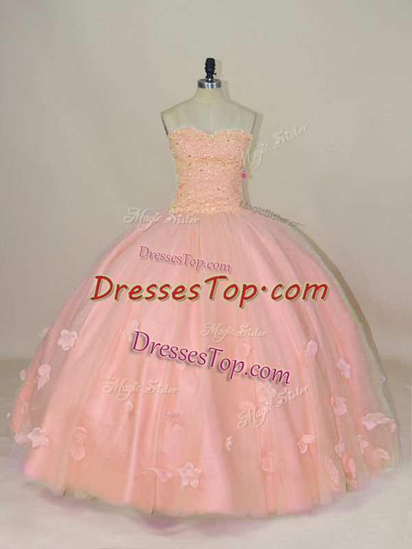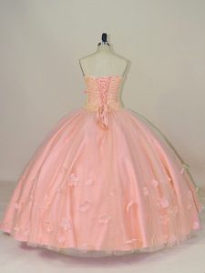 Fine Floor Length Pink Quinceanera Dress Sweetheart Sleeveless Lace Up