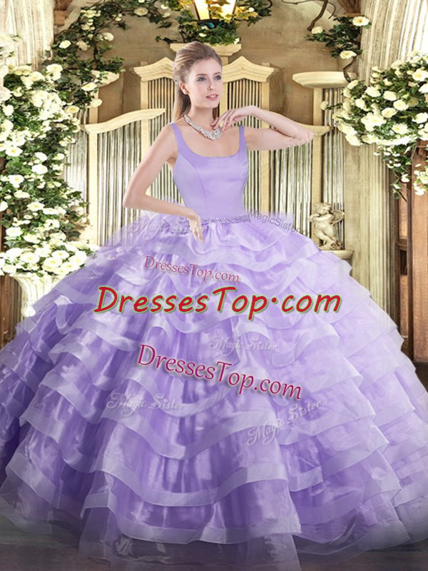 Fine Lavender Sleeveless Floor Length Beading and Ruffled Layers Zipper 15 Quinceanera Dress