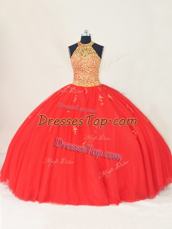 Fine Sleeveless Beading and Appliques Lace Up 15th Birthday Dress