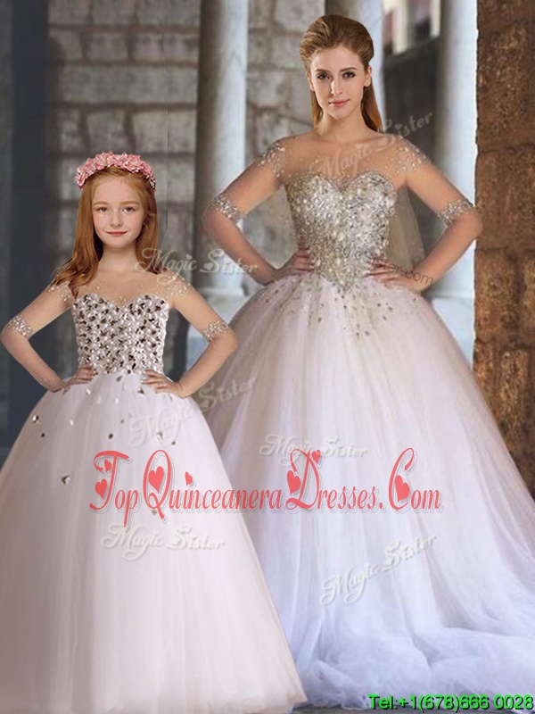 Fine Tulle Sleeveless Floor Length 15th Birthday Dress and Appliques