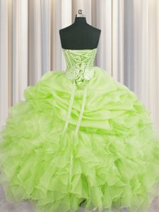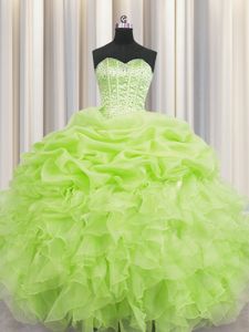 Fine Visible Boning Sweetheart Sleeveless Organza Quinceanera Gown Beading and Ruffles and Pick Ups Lace Up