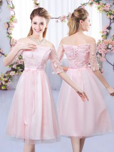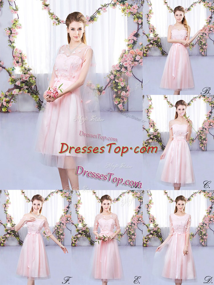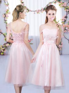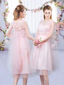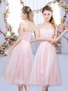 Fitting Baby Pink V-neck Neckline Appliques Quinceanera Court Dresses Sleeveless Lace Up