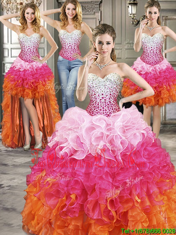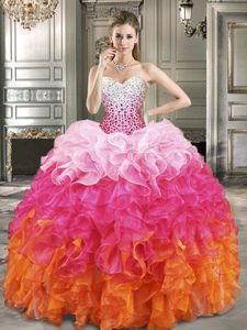 Fitting Four Piece Beading Sweet 16 Dresses Multi-color Lace Up Sleeveless Floor Length