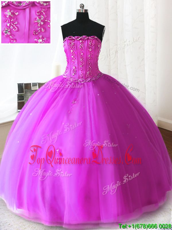 Fitting Fuchsia Sleeveless Tulle Lace Up Sweet 16 Dresses for Military Ball and Sweet 16 and Quinceanera