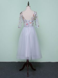 Fitting Knee Length Lace Up Quinceanera Dama Dress Green for Wedding Party with Embroidery