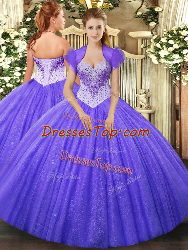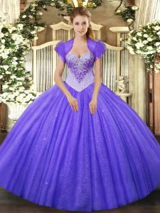 Fitting Lavender Sweetheart Neckline Beading Quinceanera Gowns Sleeveless Lace Up