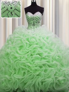 Fitting Sleeveless Beading and Ruffles Lace Up Ball Gown Prom Dress