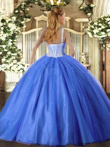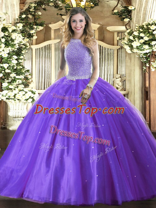 Fitting Sleeveless Beading Lace Up Quince Ball Gowns