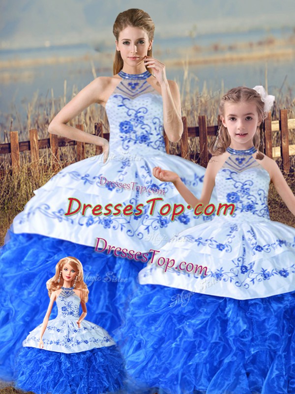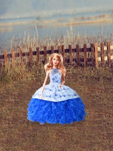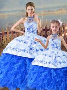 Fitting Sleeveless Court Train Embroidery and Ruffles Lace Up Quinceanera Gowns