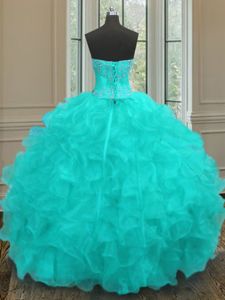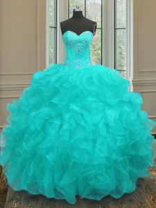 Fitting Sleeveless Lace Up Floor Length Beading and Embroidery and Ruffles Quinceanera Dress
