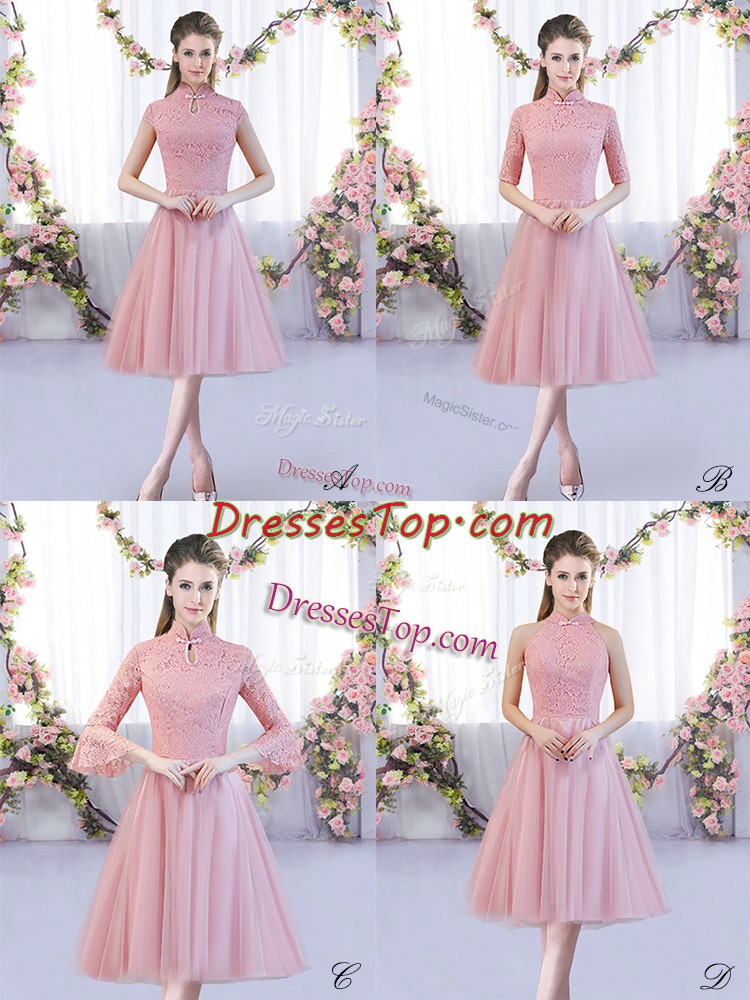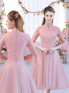 Fitting Tulle Cap Sleeves Tea Length Dama Dress for Quinceanera and Lace