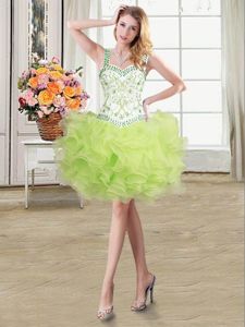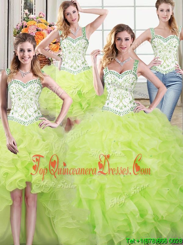 Flare Four Piece Straps Straps Floor Length Ball Gowns Sleeveless Yellow Green Vestidos de Quinceanera Lace Up