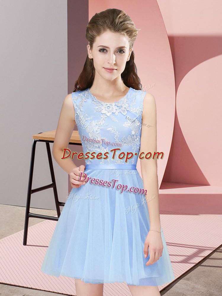 Flare Light Blue Sleeveless Tulle Side Zipper Quinceanera Court Dresses for Prom and Party and Wedding Party