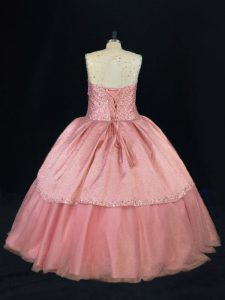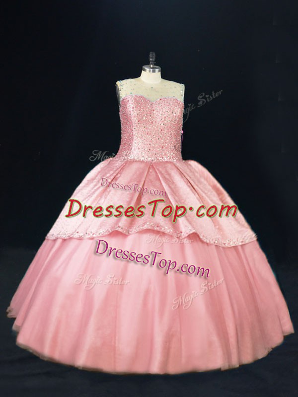 Flare Pink Lace Up Scoop Beading 15 Quinceanera Dress Tulle Sleeveless