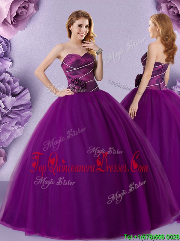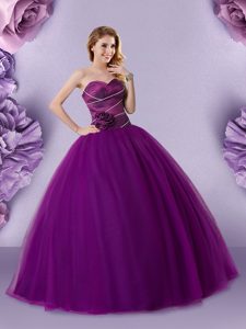Flare Sweetheart Sleeveless Zipper Quinceanera Dresses Dark Purple Tulle