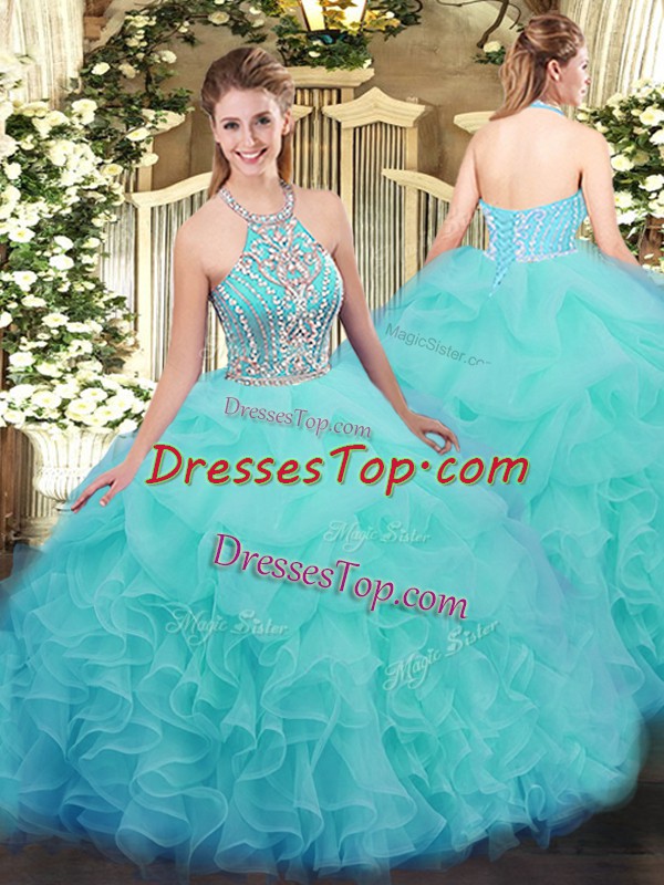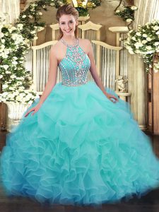 Flare Tulle Sleeveless Floor Length Sweet 16 Dresses and Ruffles
