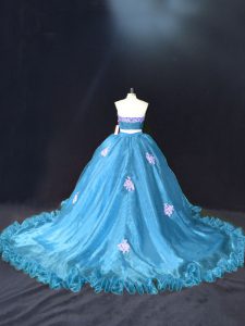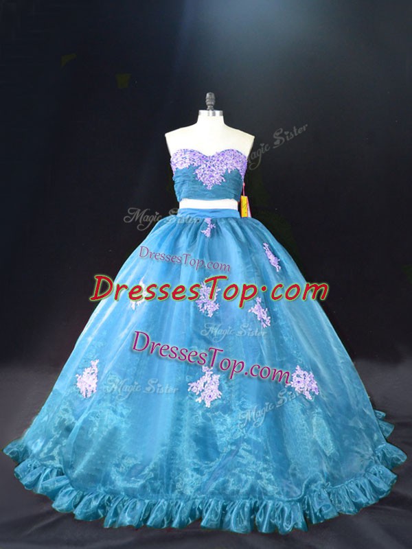 Flirting Aqua Blue Ball Gowns Appliques Sweet 16 Quinceanera Dress Zipper Organza Sleeveless