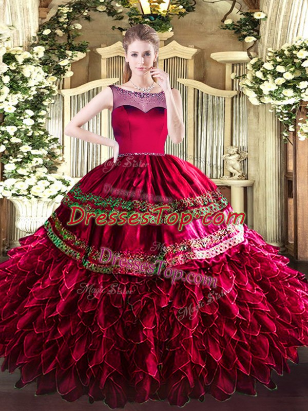 Flirting Floor Length Zipper Quinceanera Dress Coral Red for Sweet 16 and Quinceanera with Beading and Ruffles