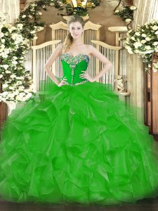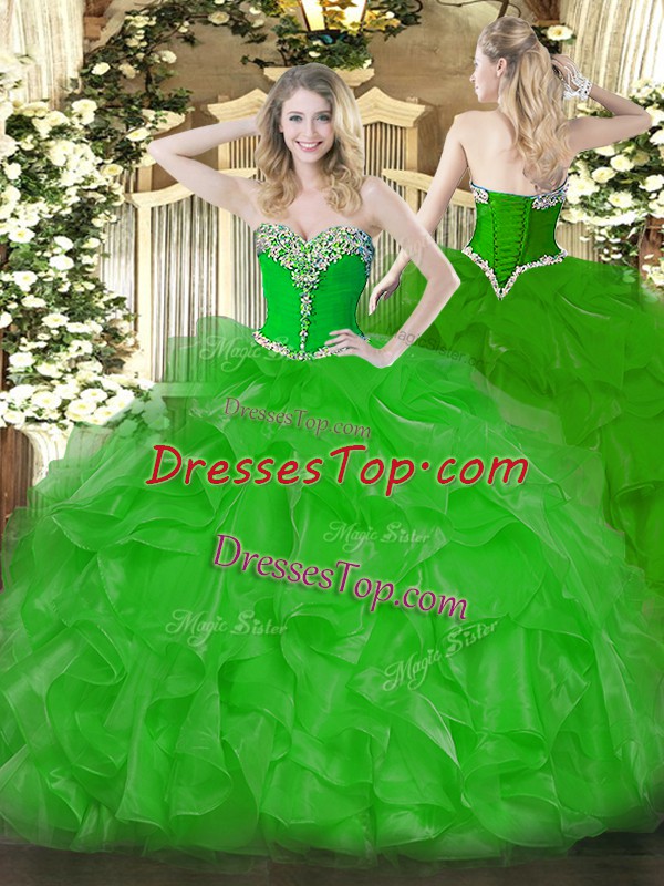 Flirting Green Organza Lace Up 15th Birthday Dress Sleeveless Floor Length Beading and Ruffles