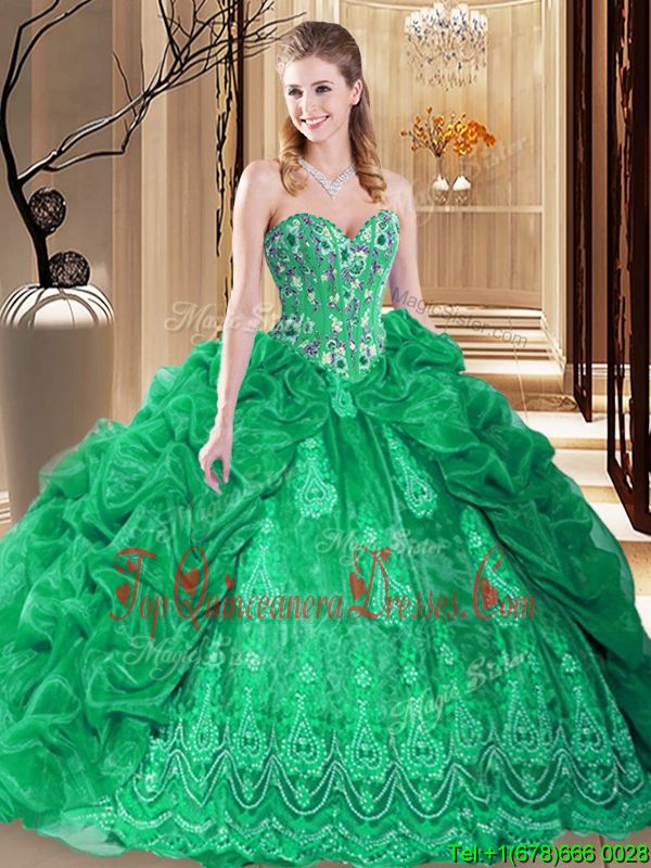 Flirting Green Sweetheart Neckline Embroidery and Pick Ups Quinceanera Dress Sleeveless Lace Up