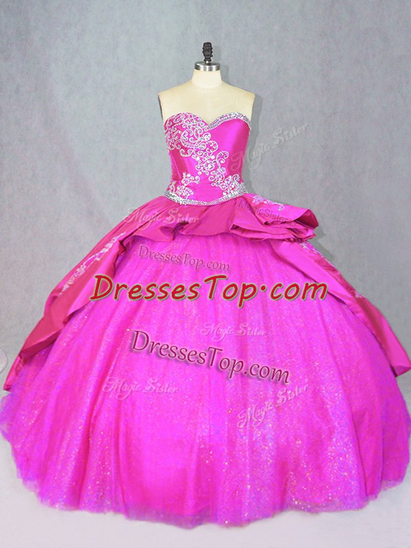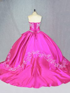 Flirting Lace Up Vestidos de Quinceanera Hot Pink for Sweet 16 and Quinceanera with Beading and Embroidery Court Train