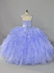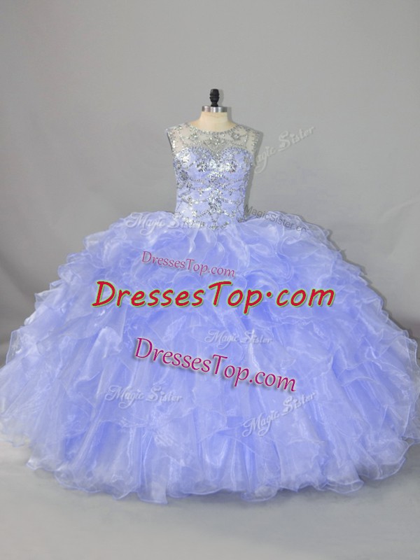 Flirting Lavender Ball Gowns Scoop Sleeveless Organza Floor Length Lace Up Beading and Ruffles 15 Quinceanera Dress