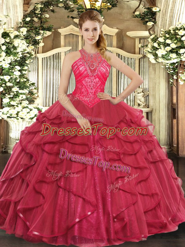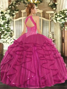 Flirting Organza Sleeveless Floor Length Sweet 16 Quinceanera Dress and Beading and Ruffles