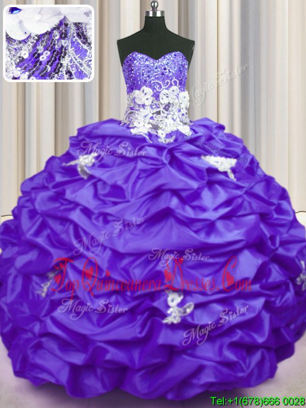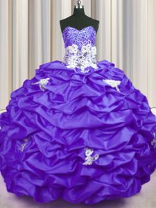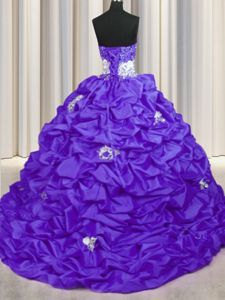 Flirting Sequins Pick Ups Purple Sleeveless Taffeta Brush Train Lace Up Quince Ball Gowns for Military Ball and Sweet 16 and Quinceanera