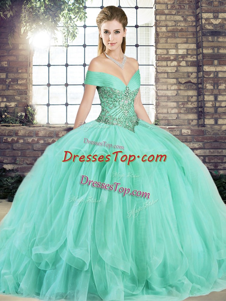 Flirting Sleeveless Lace Up Floor Length Beading and Ruffles Ball Gown Prom Dress