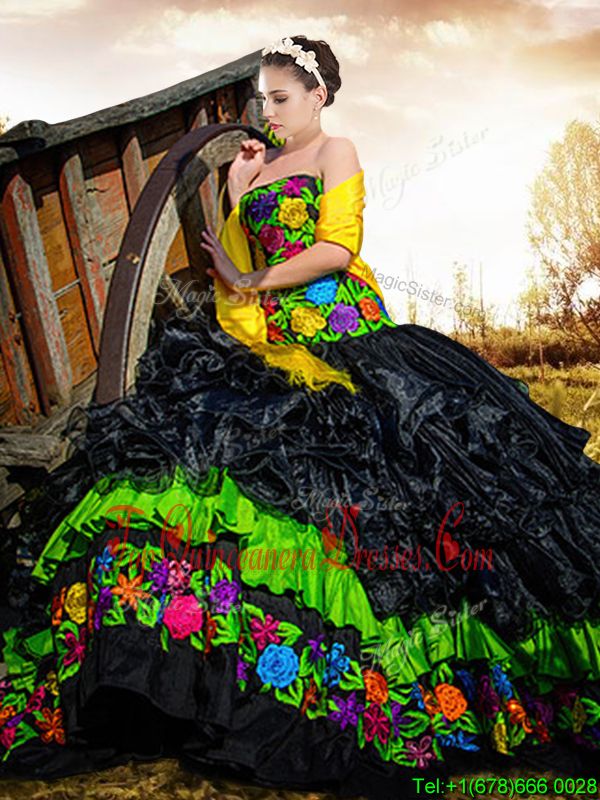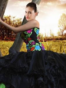 Flirting Sleeveless Lace Up Floor Length Embroidery and Ruffles Ball Gown Prom Dress