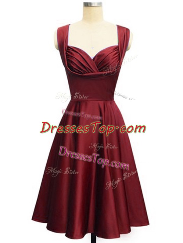 Flirting Straps Sleeveless Lace Up Quinceanera Court of Honor Dress Wine Red Taffeta