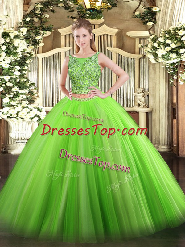 Flirting Tulle Scoop Sleeveless Lace Up Beading 15th Birthday Dress in