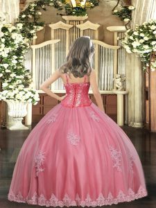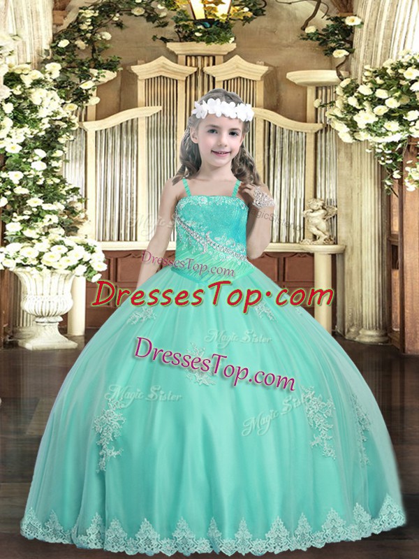 Floor Length Apple Green Little Girl Pageant Dress Tulle Sleeveless Appliques and Sequins