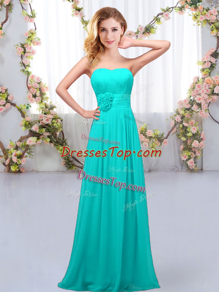 Floor Length Aqua Blue Dama Dress for Quinceanera Chiffon Sleeveless Hand Made Flower