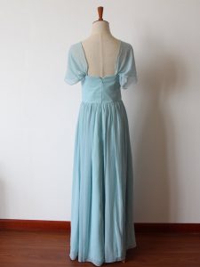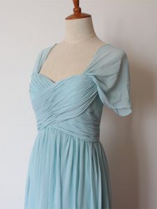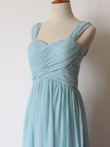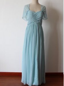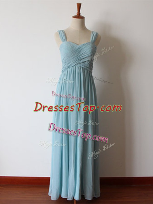 Floor Length Aqua Blue Dama Dress Straps Sleeveless Zipper
