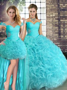 Floor Length Aqua Blue Sweet 16 Dresses Fabric With Rolling Flowers Sleeveless Beading