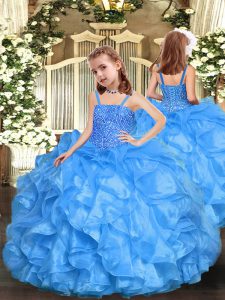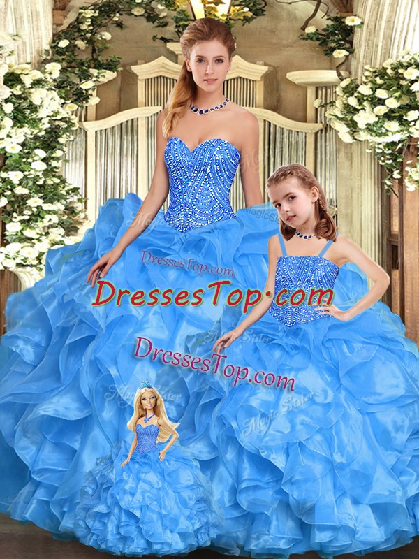 Floor Length Baby Blue 15th Birthday Dress Organza Sleeveless Beading and Ruffles
