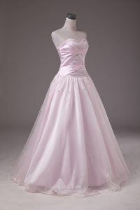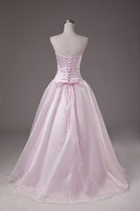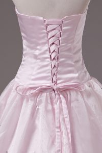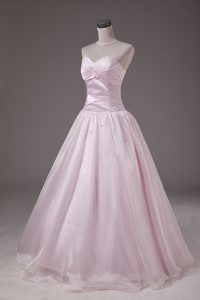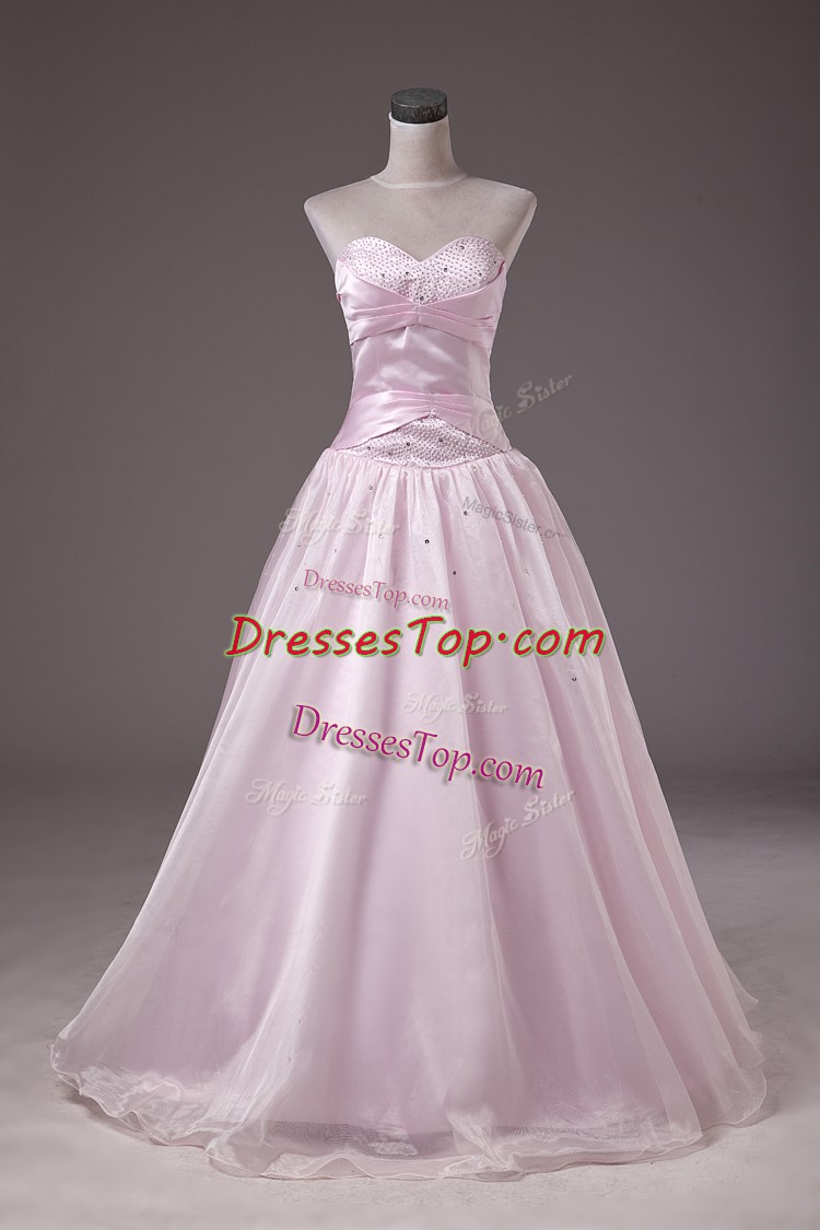 Floor Length Baby Pink Quinceanera Gown Organza Sleeveless Beading