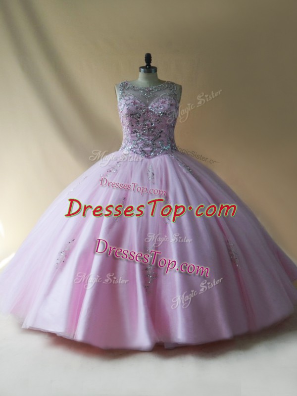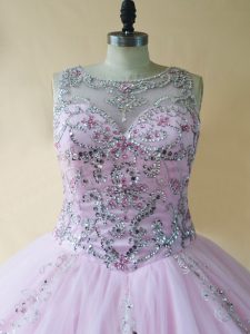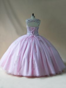 Floor Length Baby Pink Sweet 16 Quinceanera Dress Tulle Sleeveless Beading