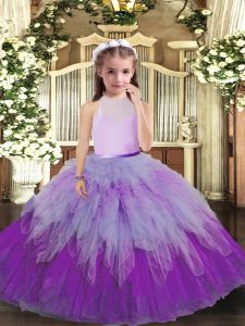 Floor Length Backless High School Pageant Dress Multi-color for Party and Sweet 16 and Wedding Party with Ruffles