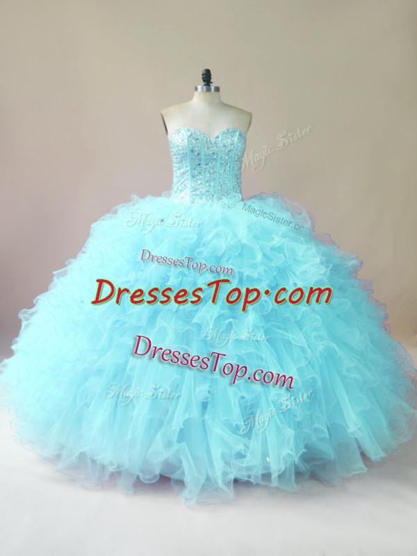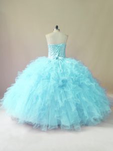Floor Length Ball Gowns Sleeveless Aqua Blue 15th Birthday Dress Lace Up