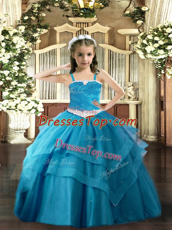 Floor Length Ball Gowns Sleeveless Baby Blue Pageant Dress Womens Lace Up