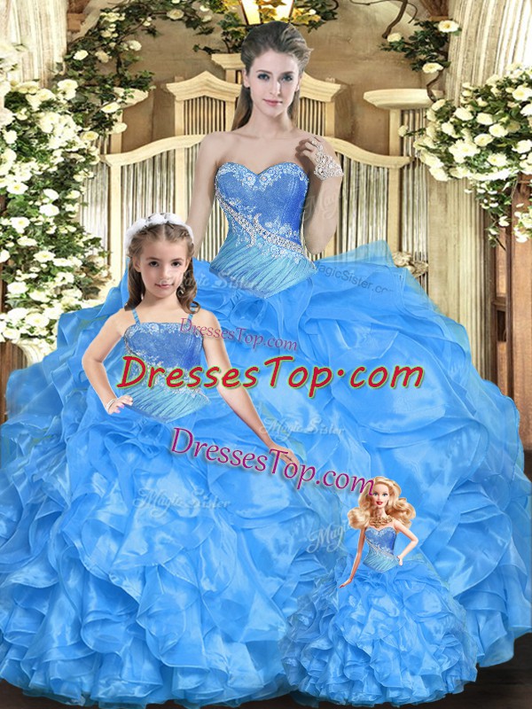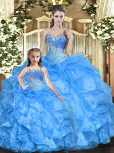 Floor Length Ball Gowns Sleeveless Baby Blue Quinceanera Gown Lace Up
